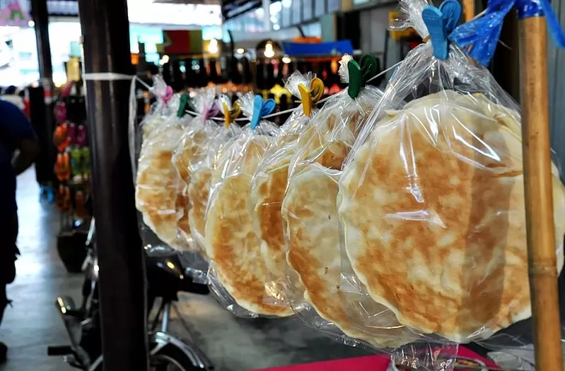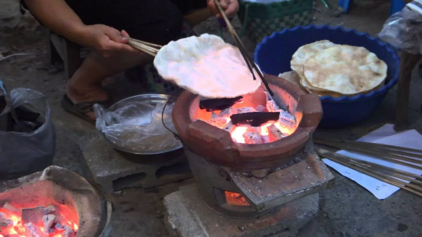 泰語則是叫做「ข้าวเกรียบว่าว」,也就是用米磨成粉加糖製作成圓餅,曬乾成小小一圓塊,然後放在掃子一樣的竹夾上,在火爐上翻來覆去的烤,圓餅很快就澎脹木來,變大至少一倍,差不多烤得表面金黃就好了!
