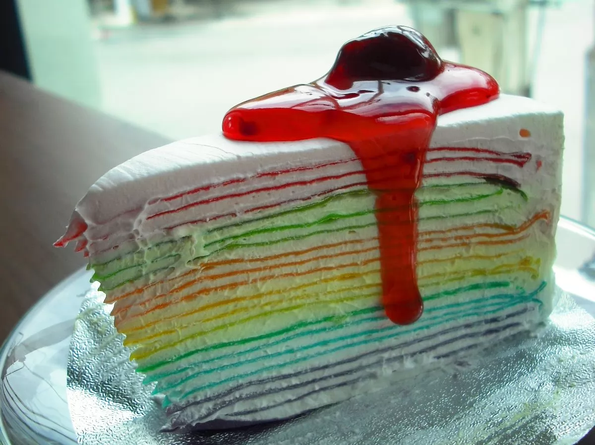 彩虹蛋糕很漂亮,吃起來,除了奶油味比較重,口感還挺不錯的。
