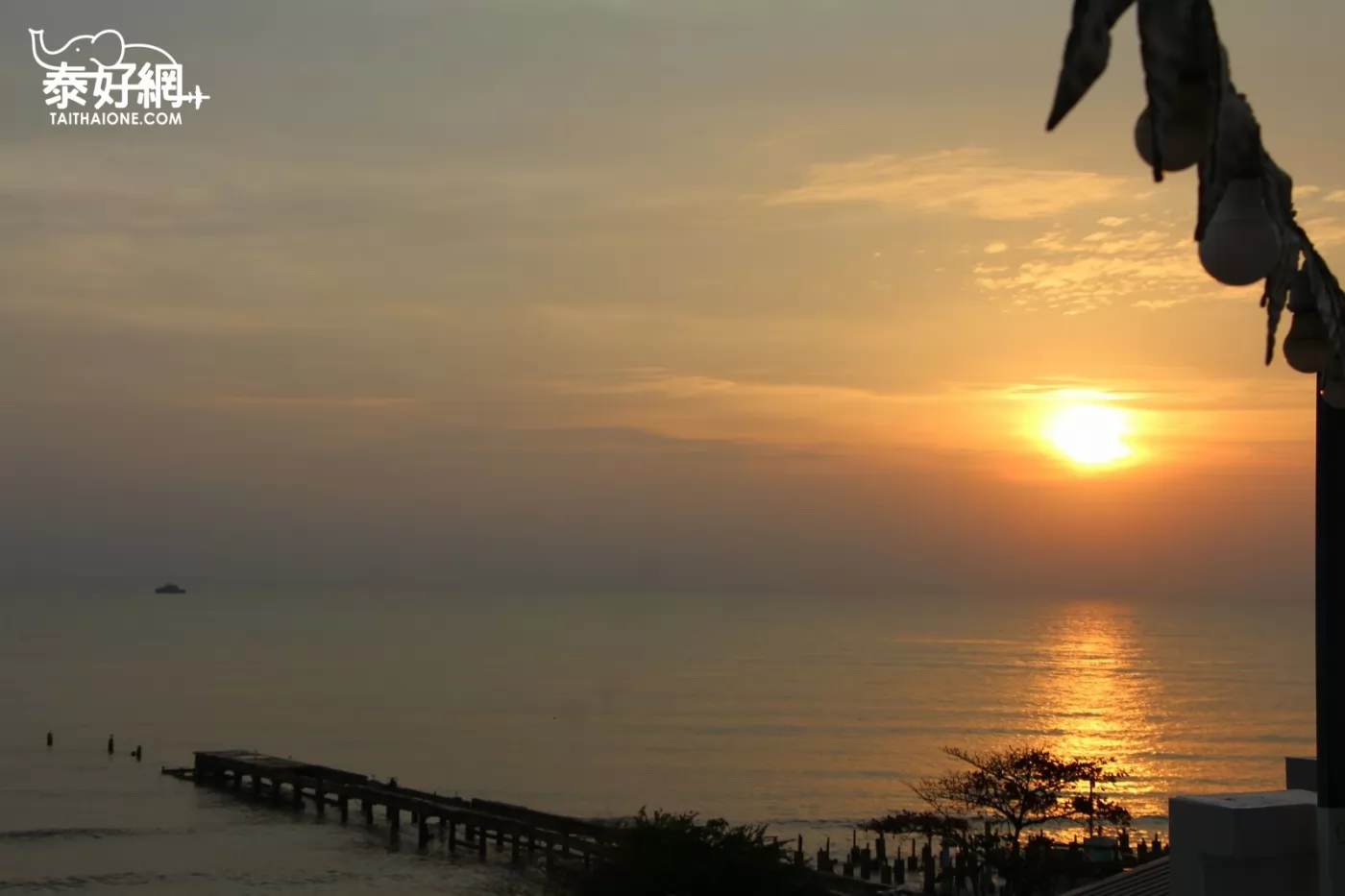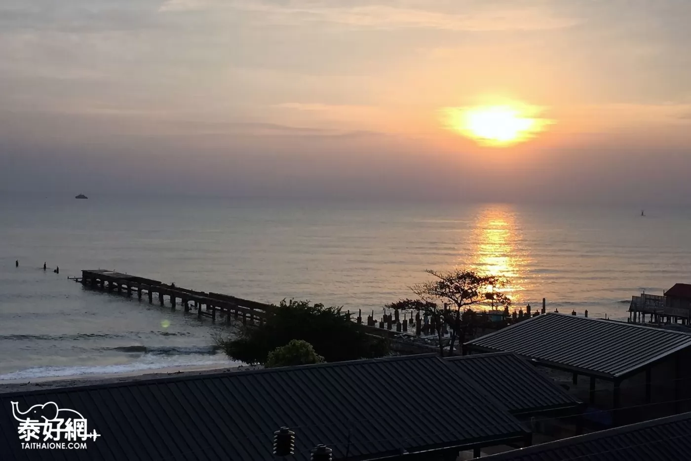 2017年1月18日清晨6點,華欣的天空微微亮起,你可以選擇到海邊去看日出,也可以像泰客一樣選個可以看海的飯店住,不用早起,也不用換衣服,就能輕鬆坐在陽台上,與其他室友一起等待日出,海前方為船隻指引燈靜靜閃著紅點。