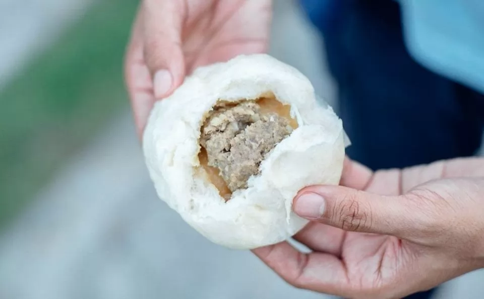 雖然只是看起來很普通的沙拉包(包子),但卻是近80歲的老阿婆擺動著微駝而枯瘦的身軀、60年來堅持用古法做出來的好味道!