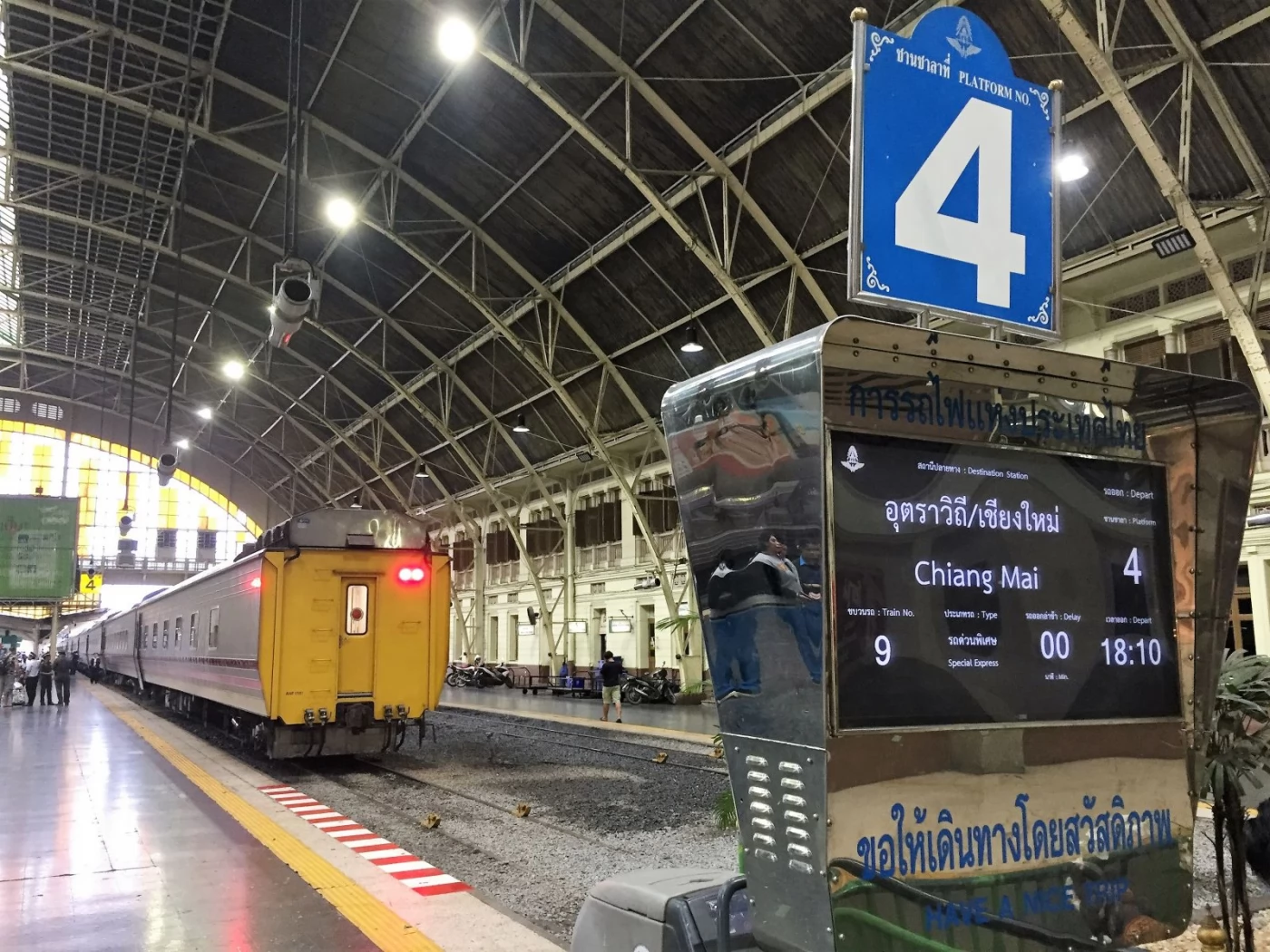 車站有14個月臺,列車前會有相關資訊,這是從曼谷到清邁的新臥舖火車,下午6點開車。