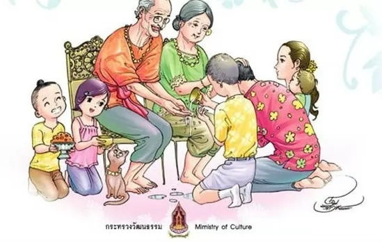 泰國西北部在新年第一天舉行灑水禮,用品除了鮮花、馨香、蠟燭及更換的新衣服以外,還有檳榔蒟醬葉,因為檳榔葉也意旨尊敬長輩、友情,另外還有金合歡水及安息香水。