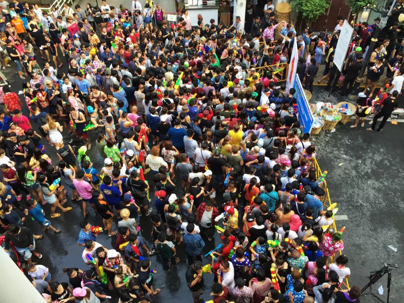 近幾年興起的西隆潑水節戰區,曼谷市區最大的潑水戰場,BTS的Sala Daeng站到Chong Nonsi站之間天橋下的馬路(長度約850公尺),封路讓國內、外民眾水戰,不時會有救火車裝備的水管和高架捷運的灑水系統突擊,抄HIGH氣氛!