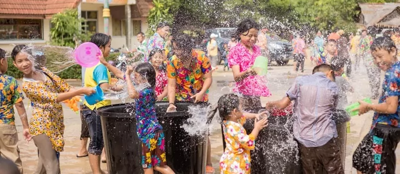 潑水節時,在街上遇到居民還是可以享受一下潑水的樂趣!