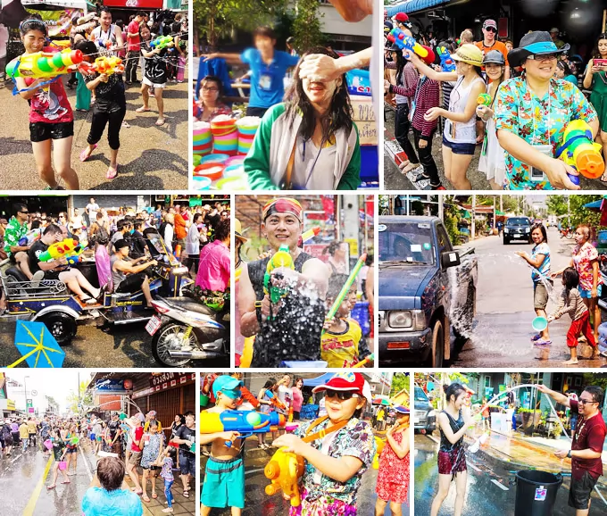 蘇美島的潑水活動主要集中在查汶海灘路(Chawang Beach Road)沿岸,13日街道兩旁都有持水槍、水桶和水管的青少年,以各種方式用冰冷的水互相潑灑,來自世界各地的遊客只有兩個選擇,躲在房間裡,或是其樂無窮的參與其中。
