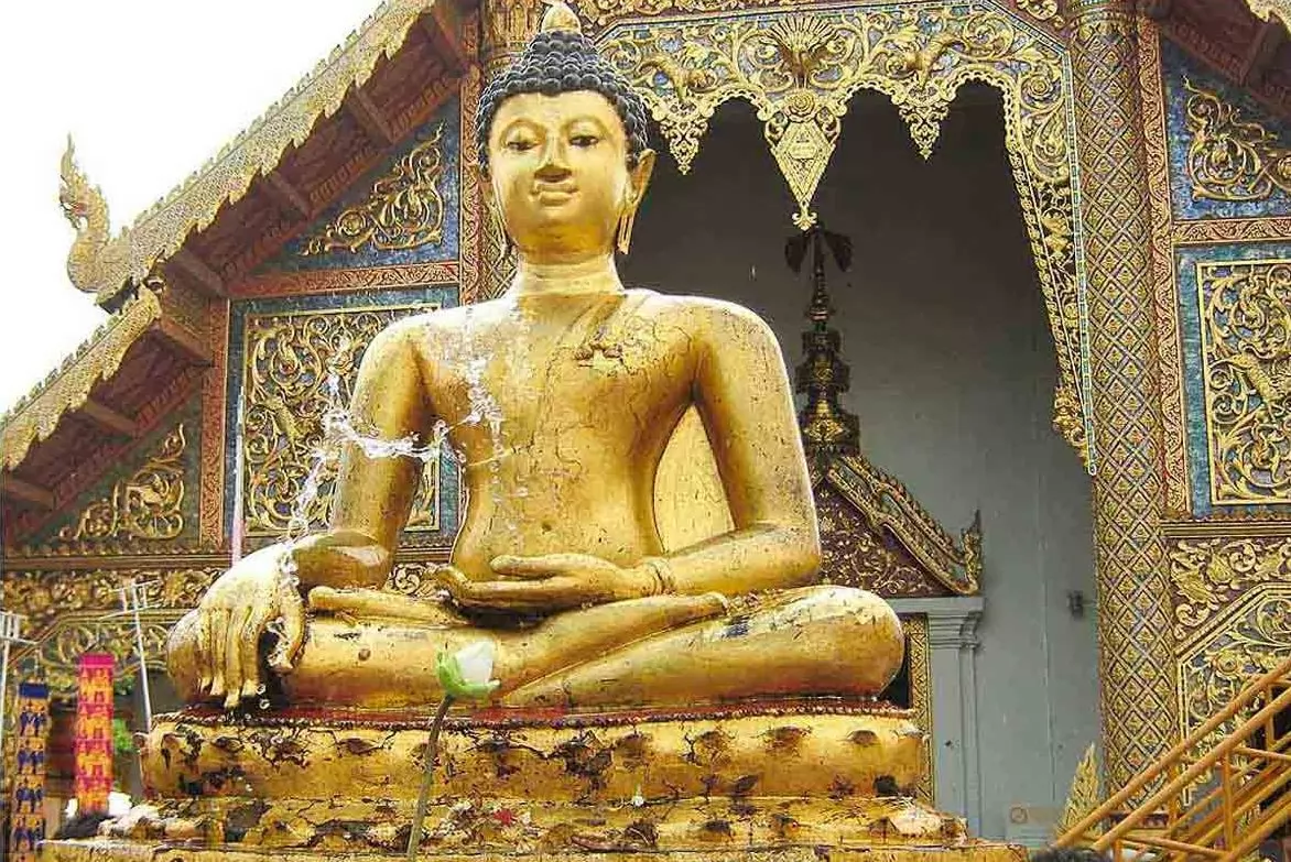每年4月中的潑水節,這尊金佛像都會被帶到街上,讓民眾進行浴佛儀式。