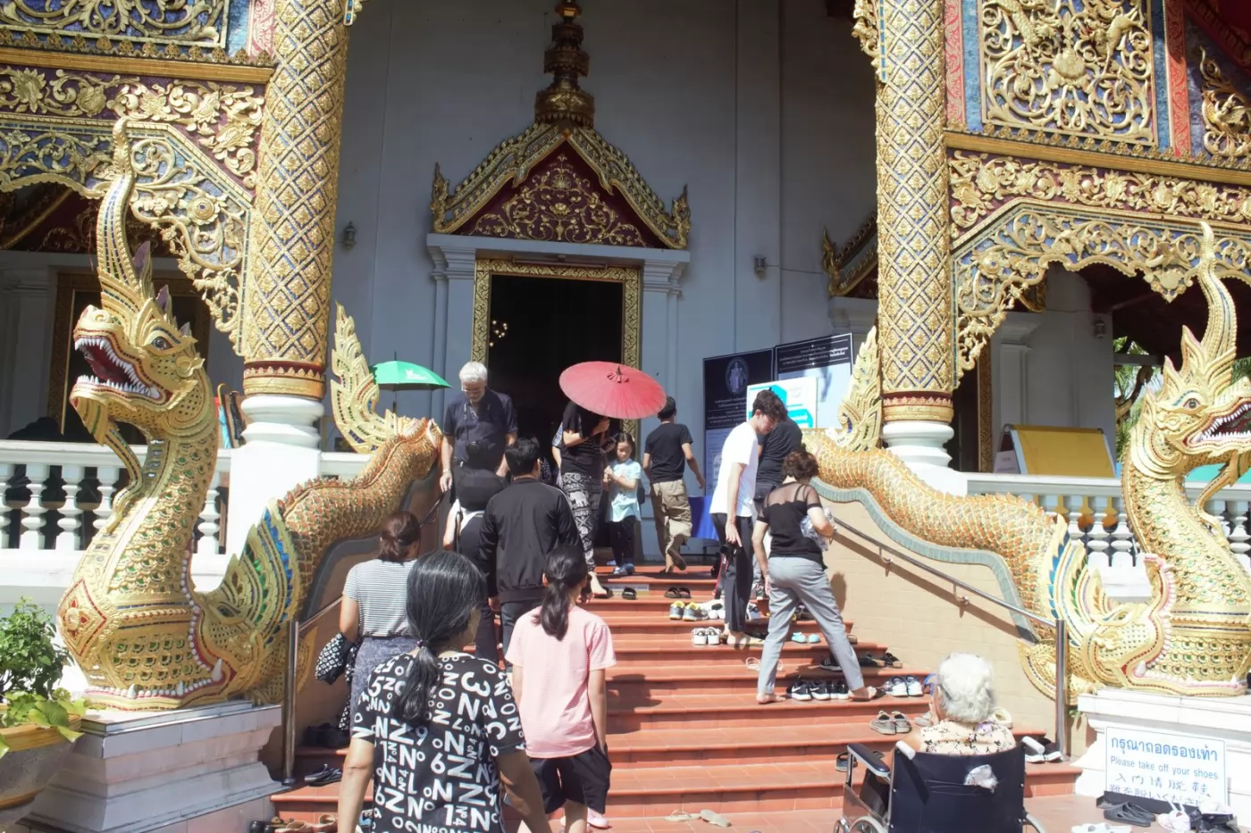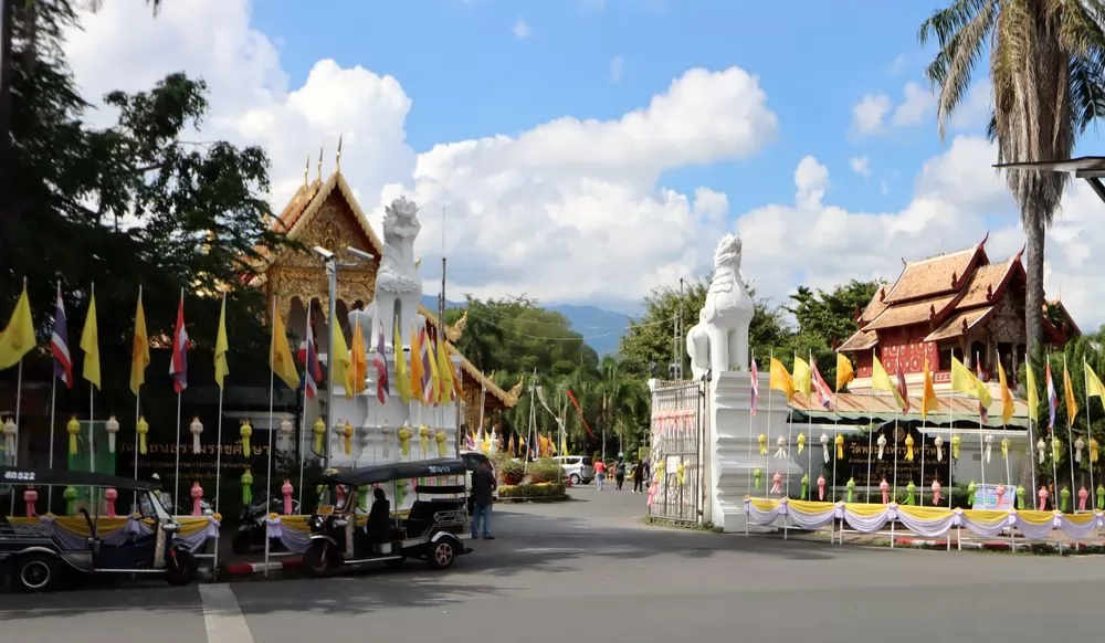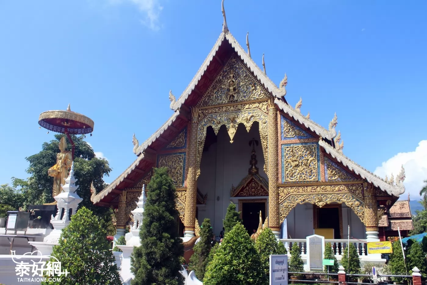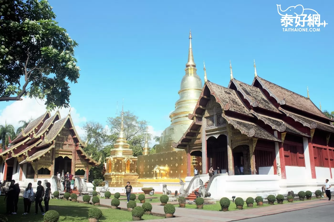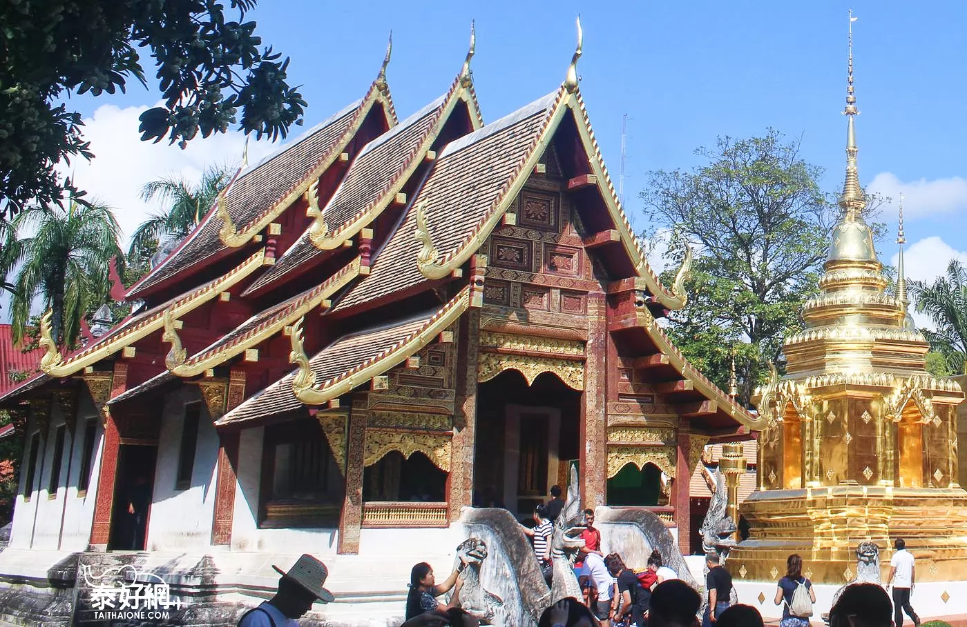 帕辛寺(วัดพระสิงฆ์)建於西元1345年,入口有兩隻白色石獅守護著,是清邁古城區規模最大佛寺!