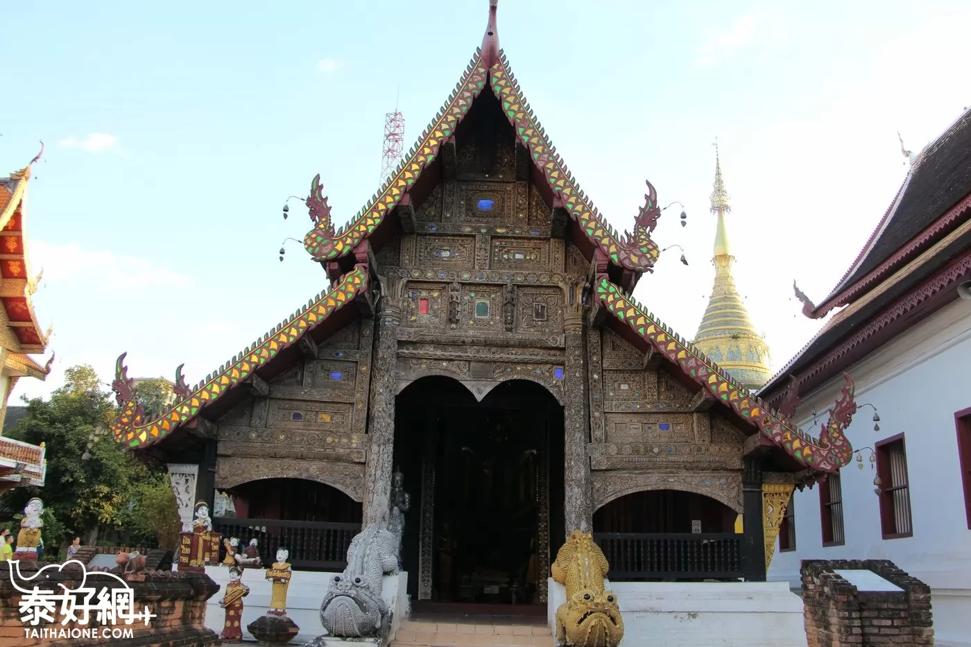 左邊新建造的僧院則是金碧輝煌,精雕細琢,每個屋簷上的勾角、每處門廊上的雕花、每個佛像上的飾物、懸掛佛塔上的風鈴,都是精緻入微,值得細看。