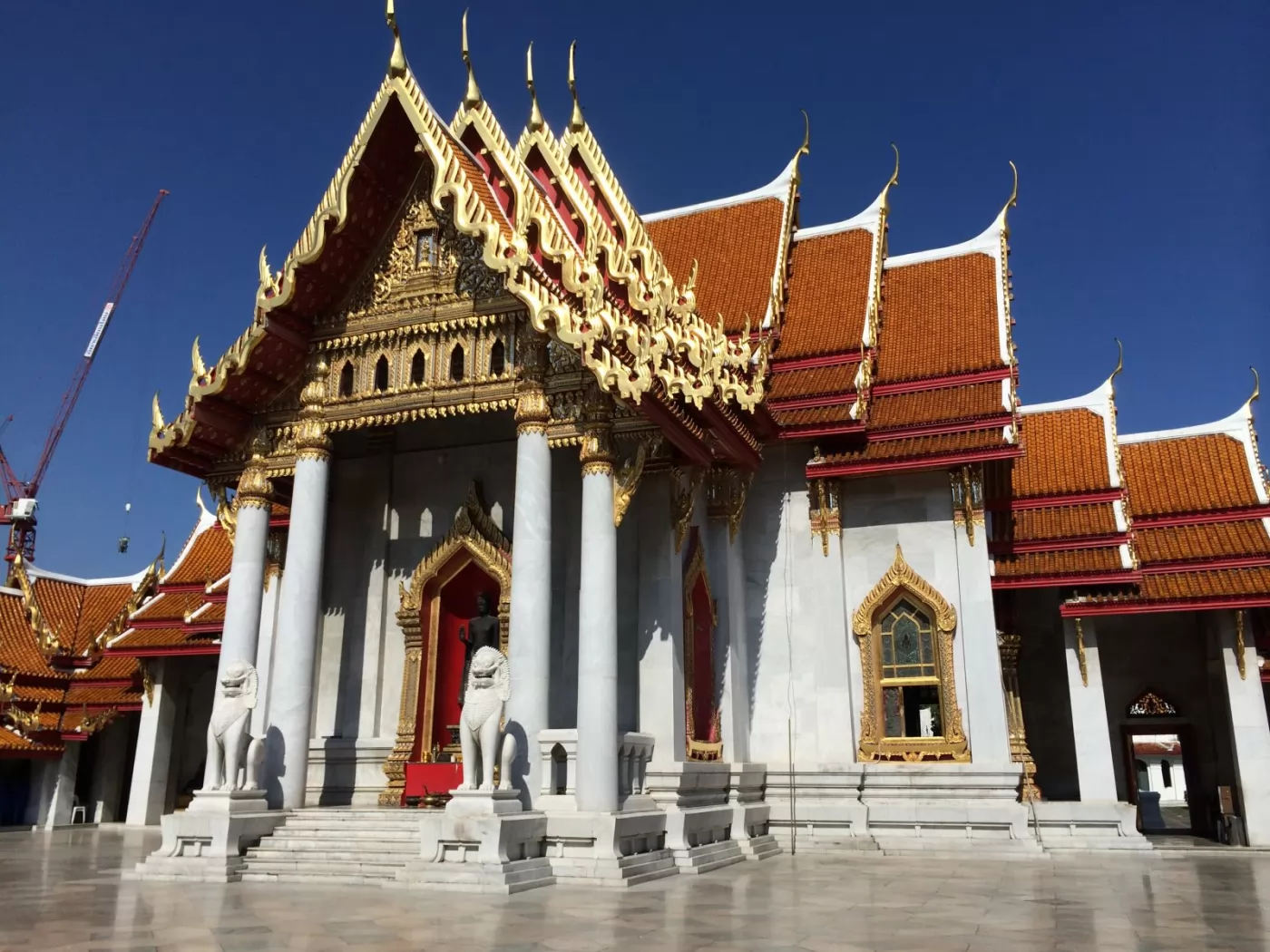 Wat Benchamabophit(วัดเบญจมบพิตรดุสิตวนาราม)寺廟正殿的寺柱、石欄、石獅,石壁及地面等材料都是由義大利進口的大理石,被稱為雲石寺,或大理石寺。