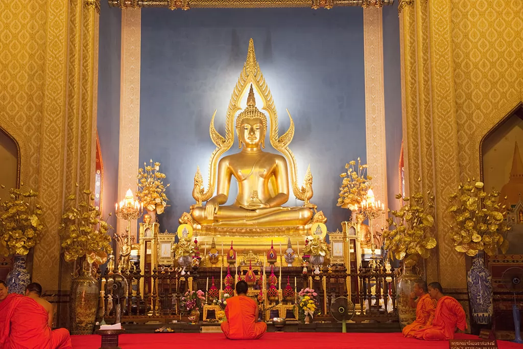 主佛殿中供奉的是在泰國北部彭世洛的Phra Buddha Chinarat複製品、約3米高的釋迦牟尼金佛。