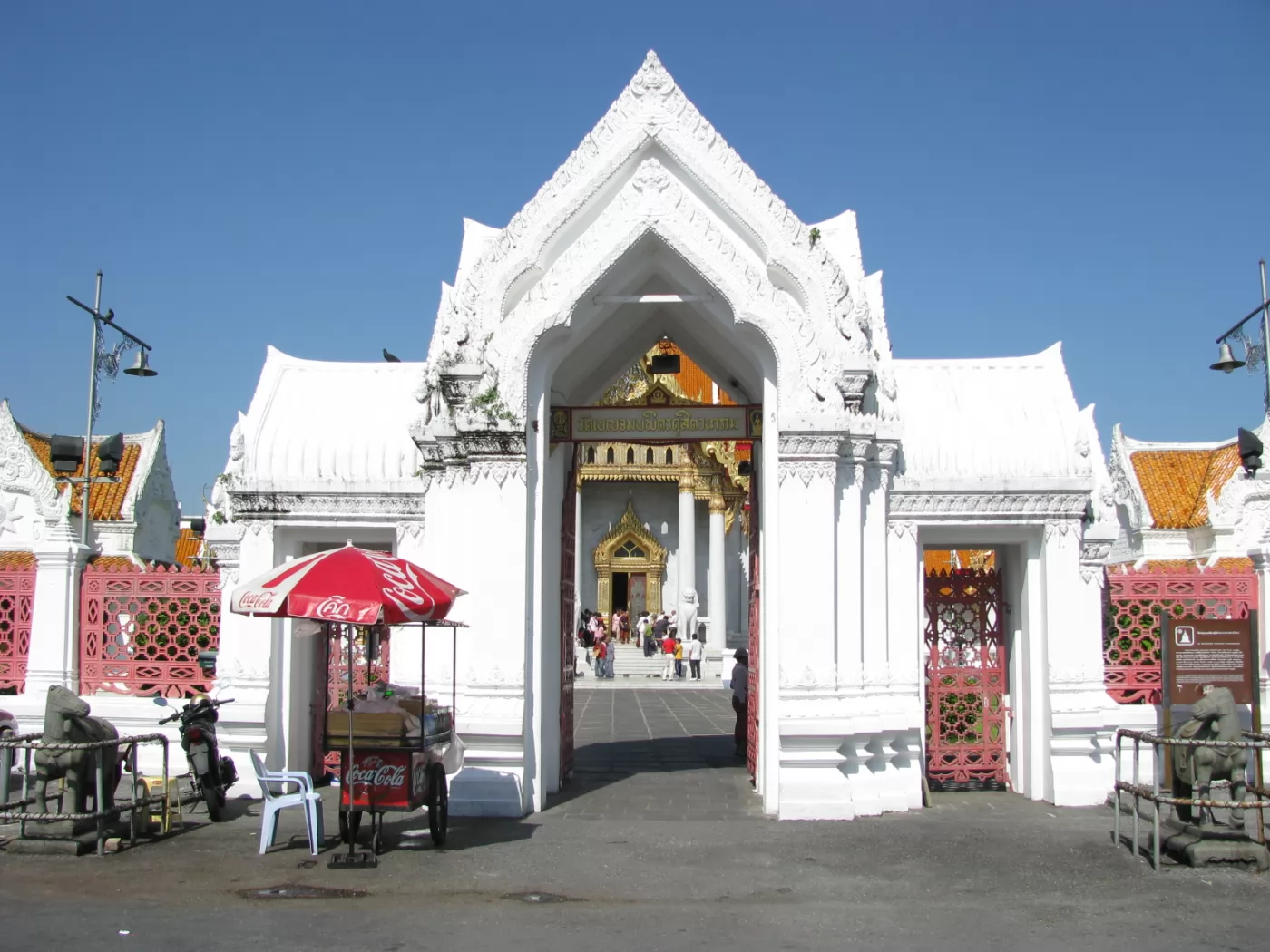 主殿入口是四條大理石柱,由兩個石獅(Singha)守衛著。