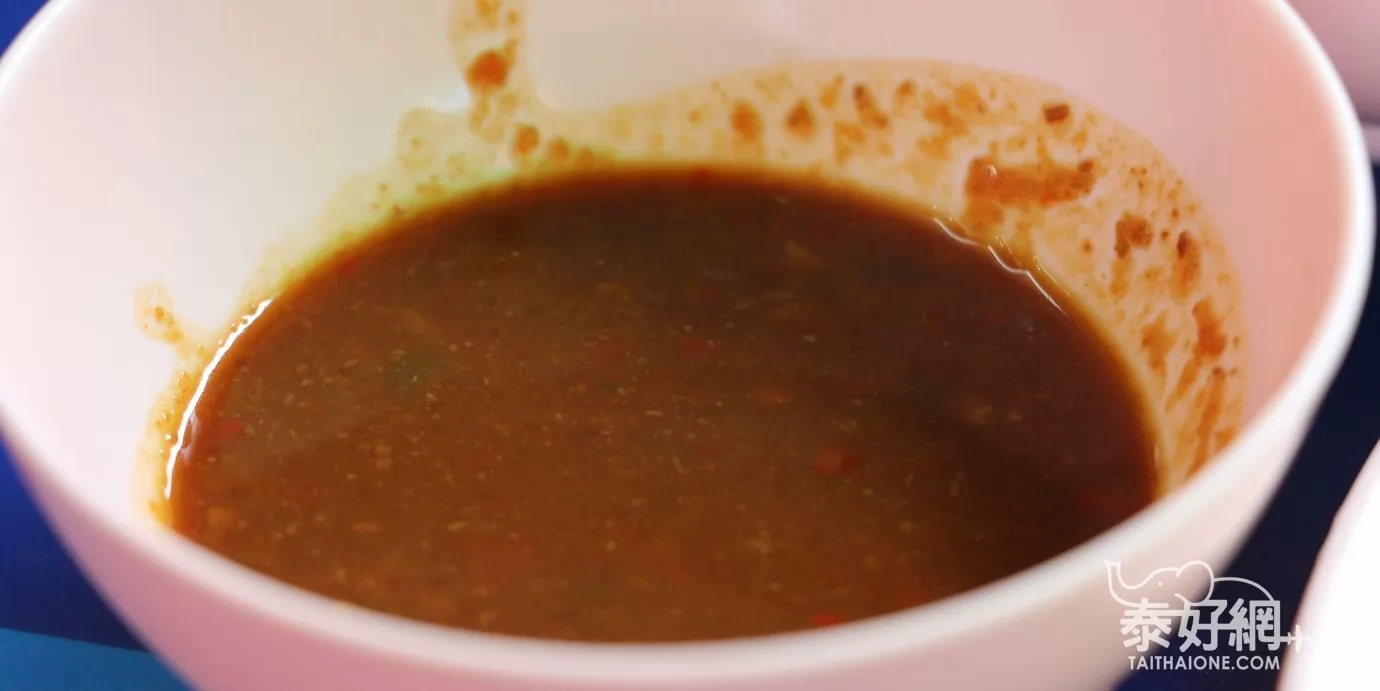 當然,增添雞肉好味的沾料不可少,這碗獨家醬料,微鹹偏辣,也很配飯。