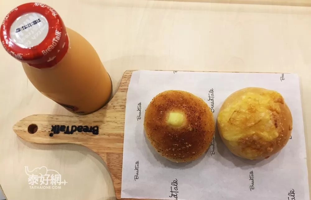 在Terminal21的分店買了兩個麵包(1個19銖)和1瓶泰或奶茶(49銖),很經濟的下午茶,坐在店裡的用餐區慢慢享用,麵包好吃,泰奶有些偏甜。