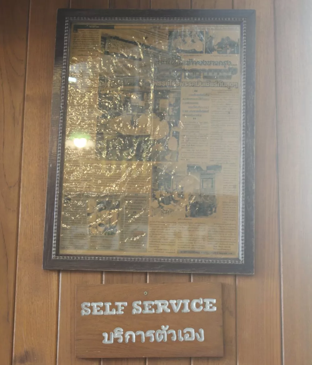 店內採自助服務,顧客必須自行到櫃檯點餐、先付款,並自行取餐。牆上掛著以前報紙對店的報導。