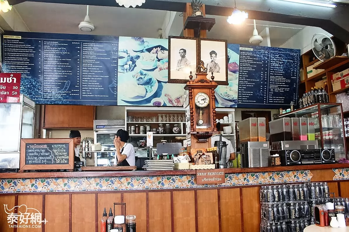 早期移居泰國的華人所開設的店,要說它是餐廳也行(這裡也有泰國粥、飯類等),說是cafe亦是(賣的是傳統的泰式咖啡),全日都有中西式早餐供應。