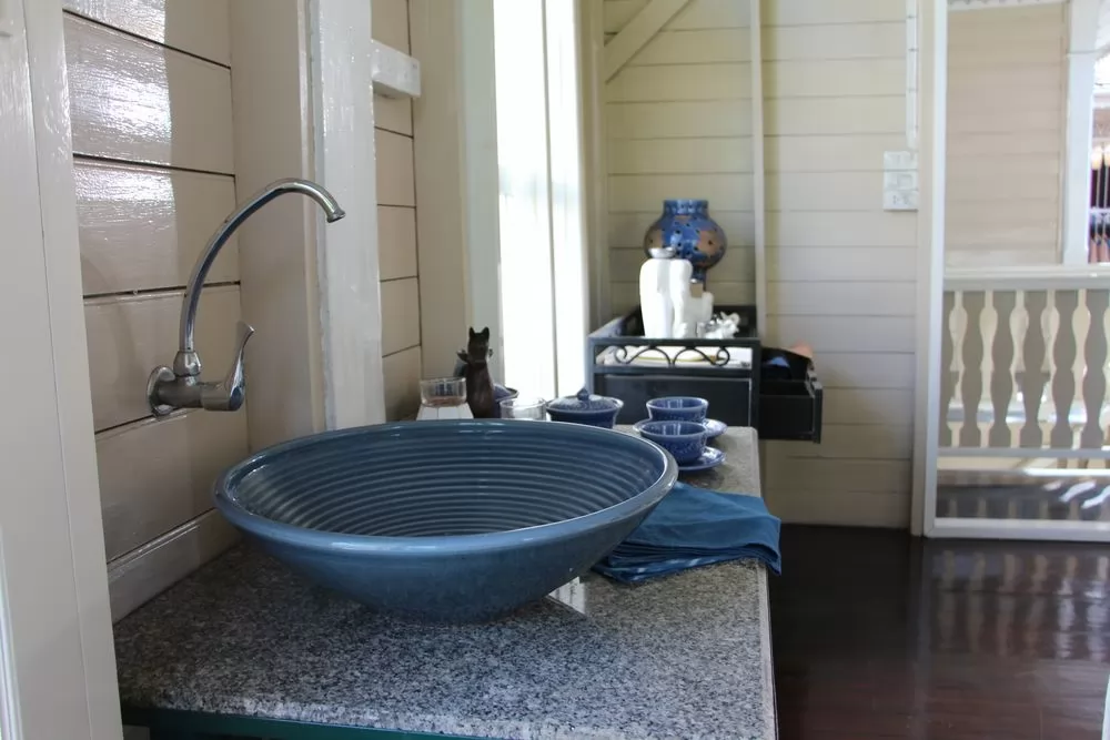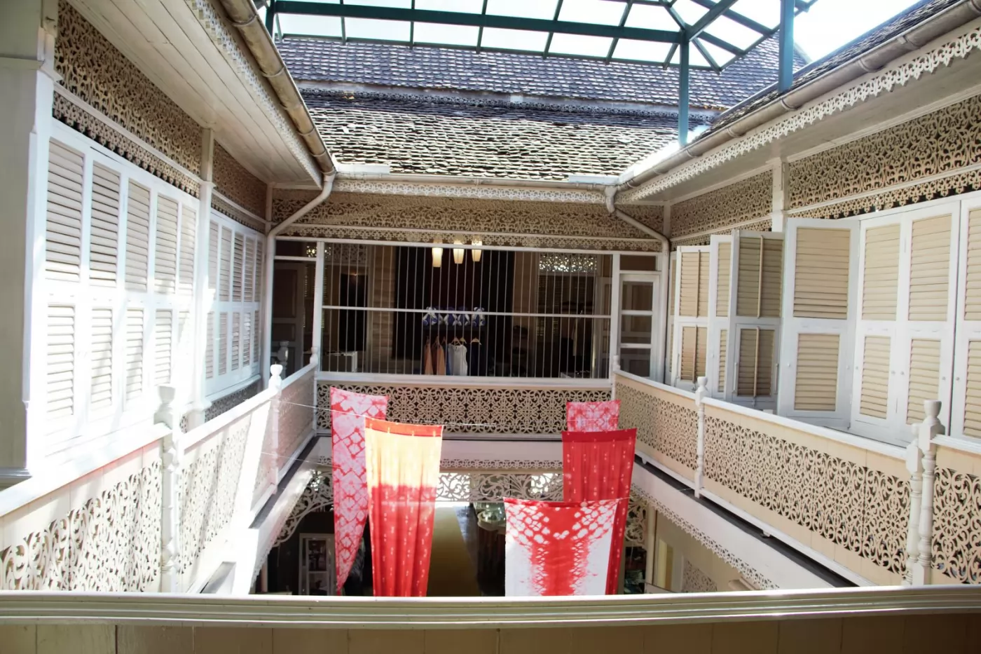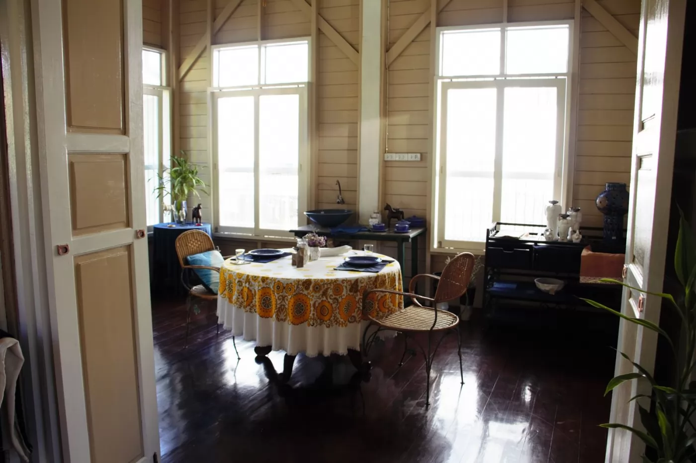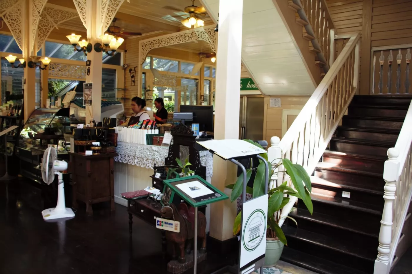 喝完下午茶,休閑放鬆之後,再花時間參觀這棟美麗的建築,內外到處都裝飾著精緻細膩的鏤空木雕,入口處先看到的是青瓷器的展示廳,房屋中央則有一個明亮通風的天井,後面還有一個花木扶疏的花園,在2004年曾被暹羅建築協會評選為優良建築古屋維護類優等獎。