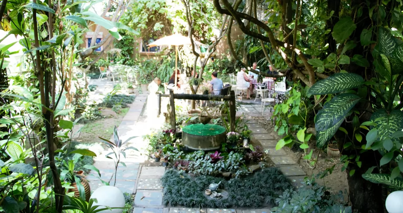 百年柚木老屋很漂亮,為了保持原貌,沒有安裝冷氣設備,中間用餐區,高吊的電扇和通風良好的環境,不會悶熱。後院有一個優靜的花園,開放客人用餐。