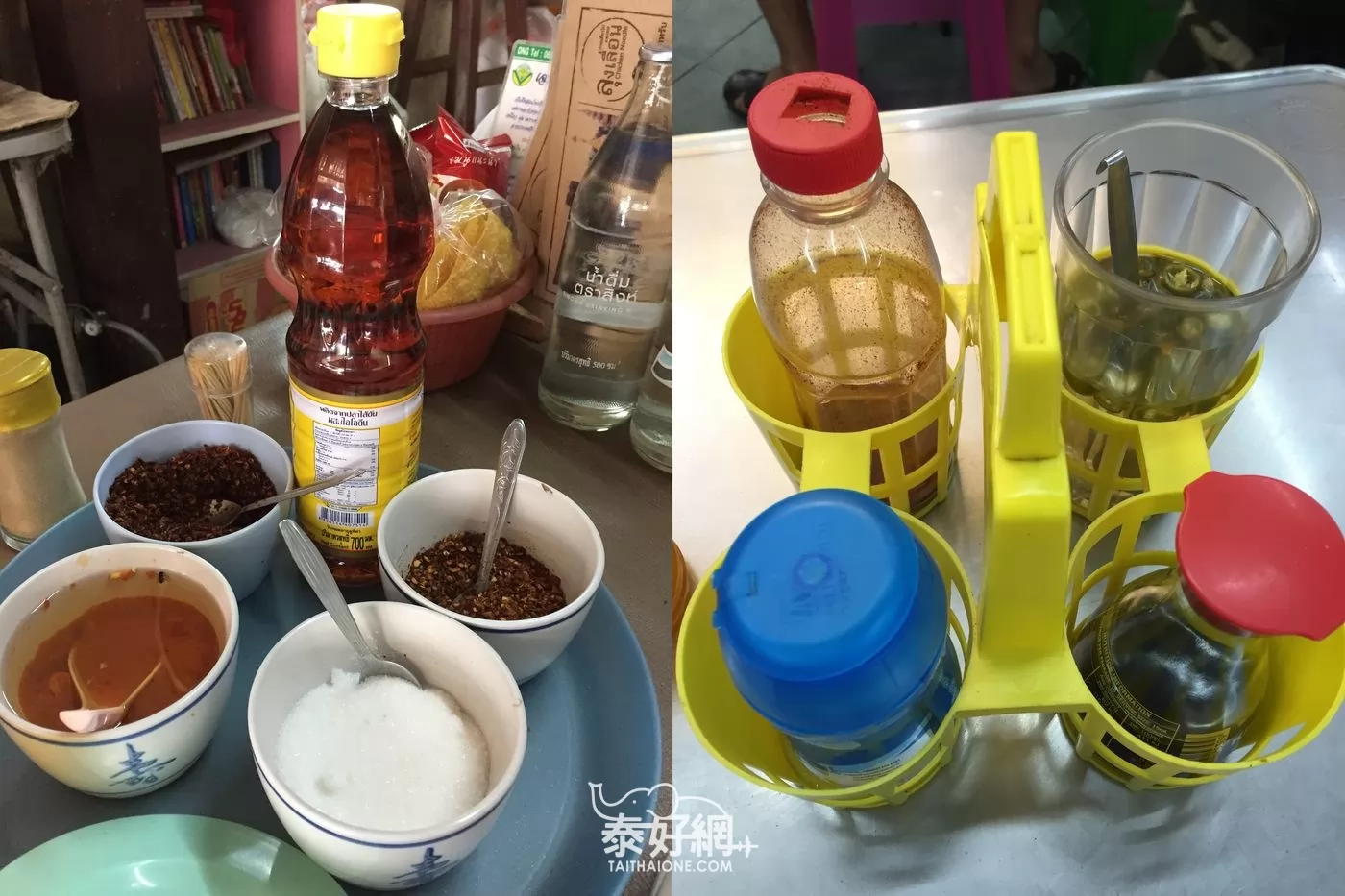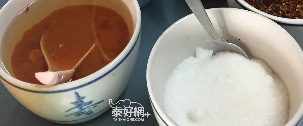 泰國人口味偏甜,烹飪時也會少許白糖。吃麵、粿條、米粉也不例外,往碗裡加上兩、三勺白糖,讓味道更濃。