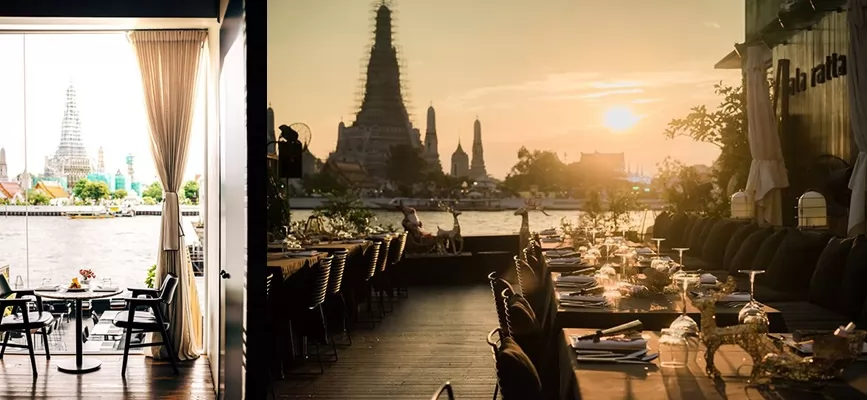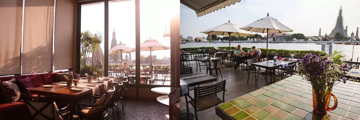 這家餐廳保證能看到黎明寺(鄭王廟)的景色,吸引很多客人光顧,餐廳就在湄南河畔,所以也能看到美麗的河景。