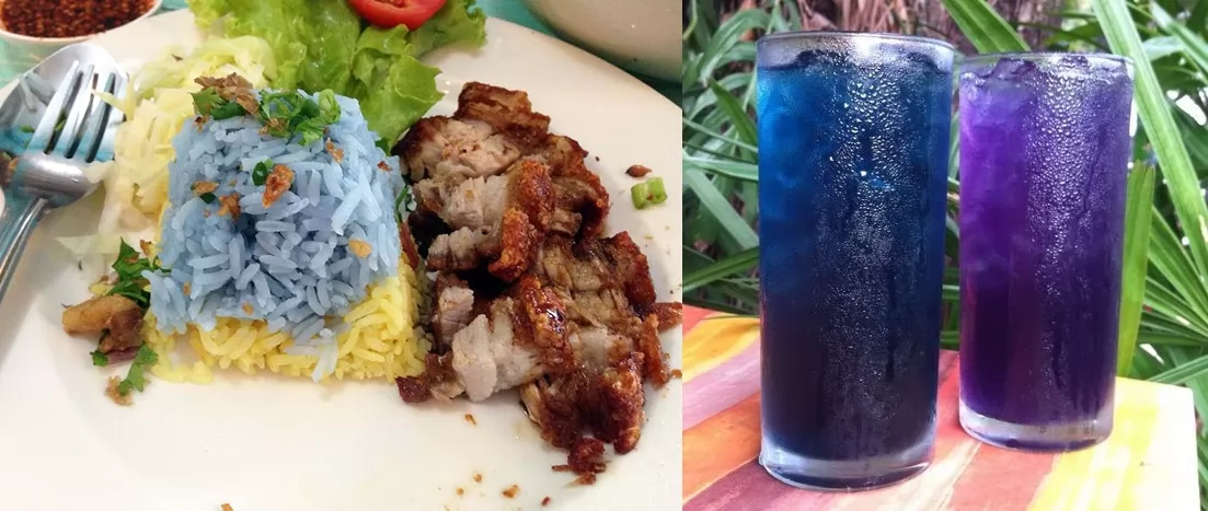 Anchan(อัญชัน)是店主Pair女友的名字,意思是蝶豆花,是1種天然的色素,店主用蝶豆花染成藍色的粿條、藍色的飯和紫色的飲料,非常特別,很受歡迎。