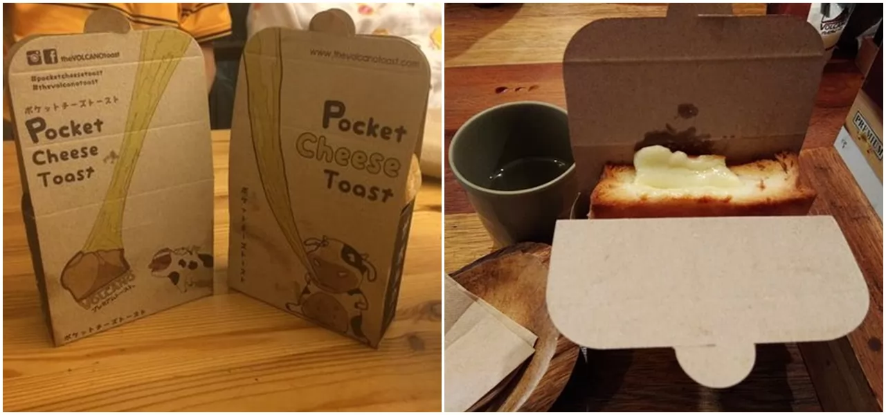 去年捱出Pocket Cheese Toast(口袋起司吐司),把起司放進吐司中間的夾層裡,然後烤得金黃酥軟,妝進口袋大小的紙盒,1個55銖,現點現做,新鮮!