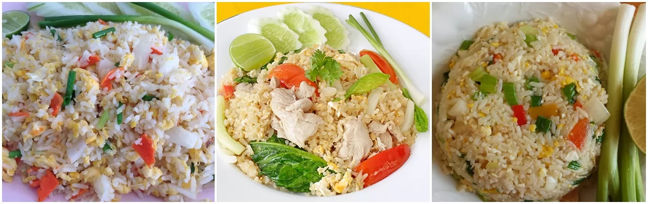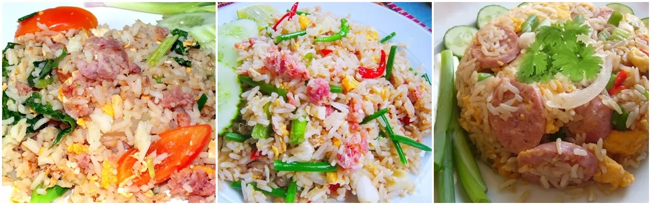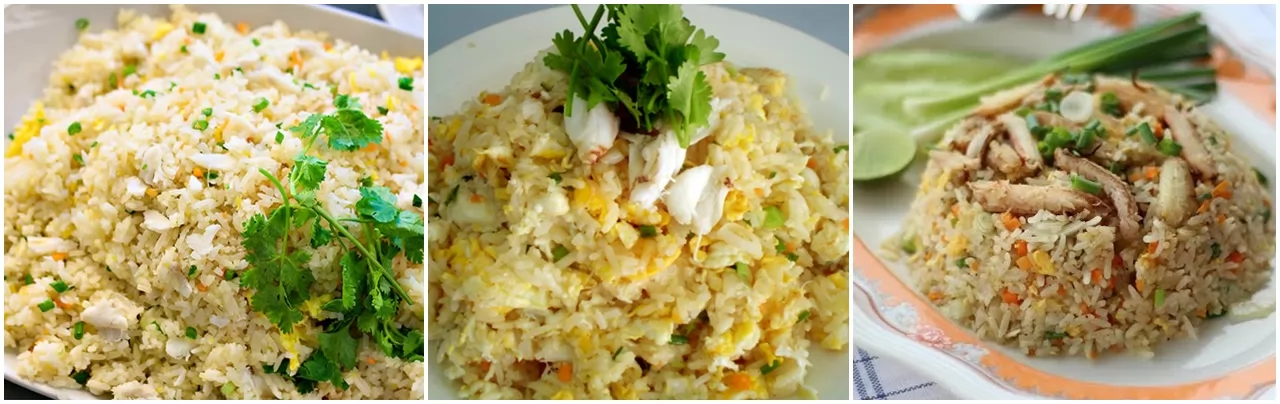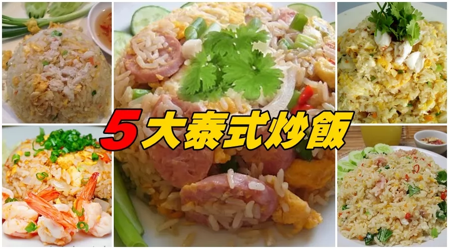 泰式炒飯有很多種口味,泰客精選出5種:雞肉、豬肉、蝦仁、蟹肉、酸肉。