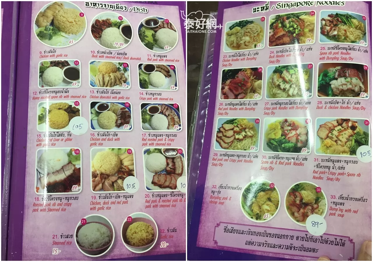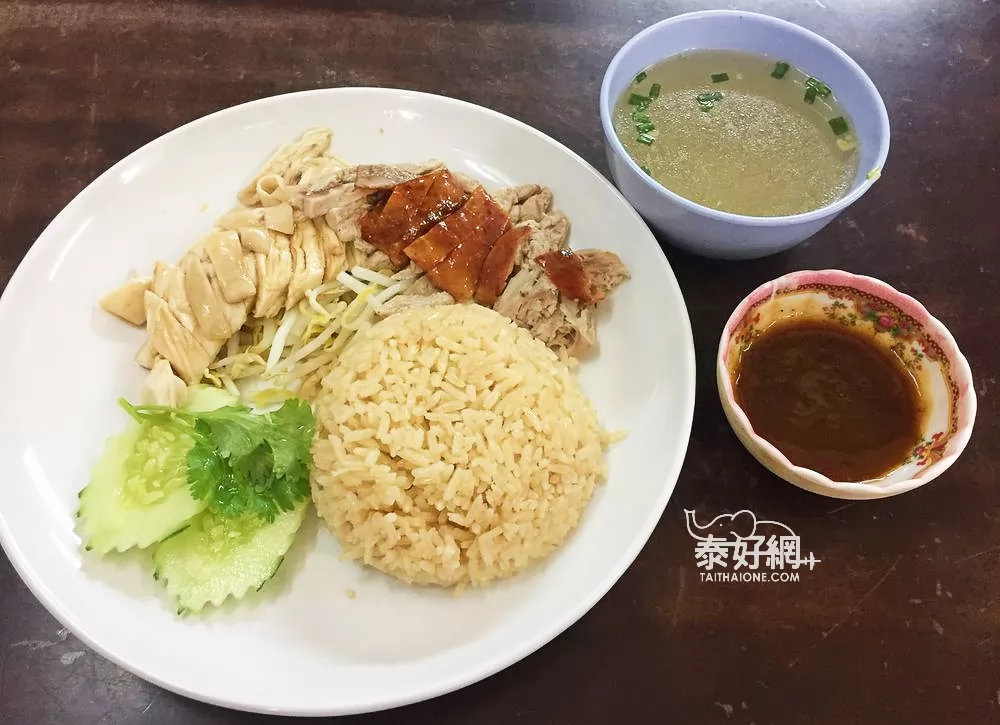 來這裡首選當然是雞肉飯,1盤79銖,價格雖然比一般略貴,但是雞肉的份量夠,重要的是,肉質的嫩度超過30泰銖的口感。至於飯,老闆說,那是道地新加坡師傅傳授給他的香料秘訣所拌成的飯,吃起來真的不一樣,光是這點,就讓曼谷的饕客讚不絕口!也不在乎多花幾十塊錢。