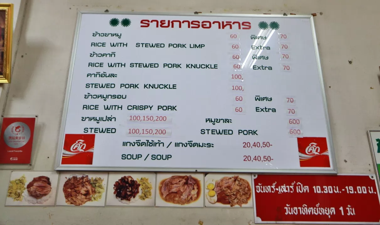 豬腳飯(ข้าวขาหมู),普通1盤60銖、特級70銖。