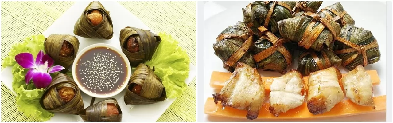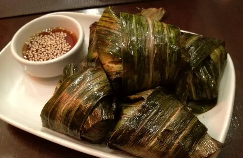 泰國有道值得推薦的菜肴—香蘭葉包雞(ไก่ห่อใบเตย)。