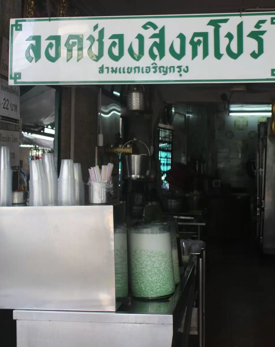 曼谷中國城有很多傳統的美食,連冰品也有,新嘉坡椰奶冰品Singapore Potchana(ลอดช่องสิงคโปร์ สามแยกเจริญกรุง),可是超過60年的老味道!營業時間是早上11:30到晚上10點。