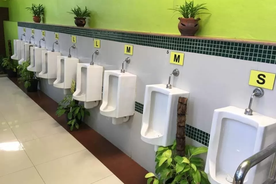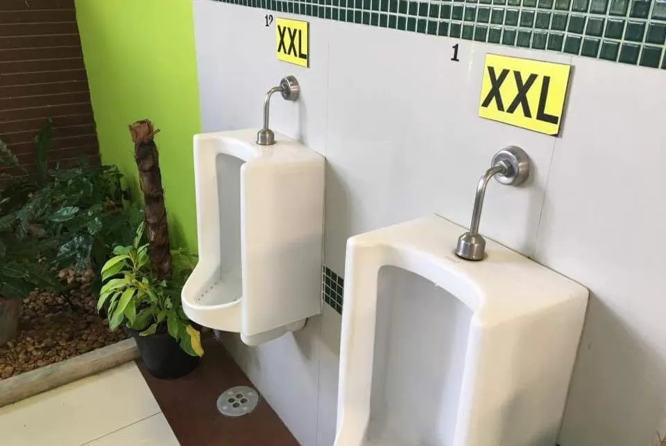 一名泰國網友在Twitter上分享了一組男廁照片,小便池上分別用S、M、L、XL、XXL進行分號,意思是要男士們根據自己的尺寸選擇合適的便池。