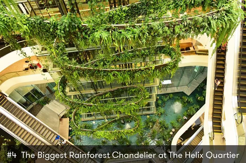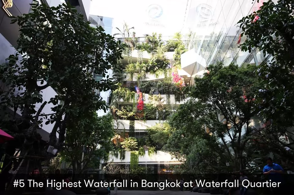 高達4層樓的人工瀑布,位於EMQUARTIER商場的Vertical Garden。這是人工的,您看得出來嗎?