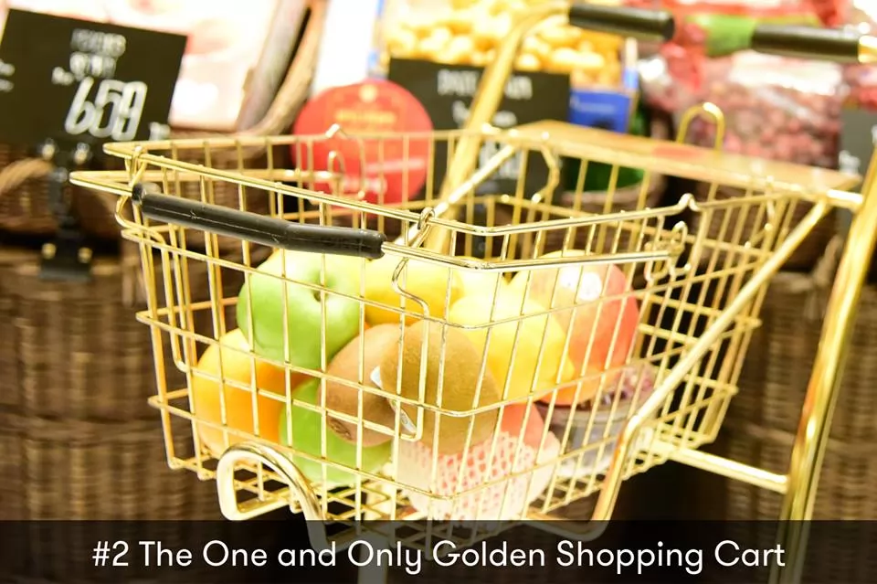 EM商場,EMQUARTIER商場G層和EMPORIUM商場4樓的Gourmet market超市,有金色的手推車(全泰國唯一),增添購買物件的品味和質感。