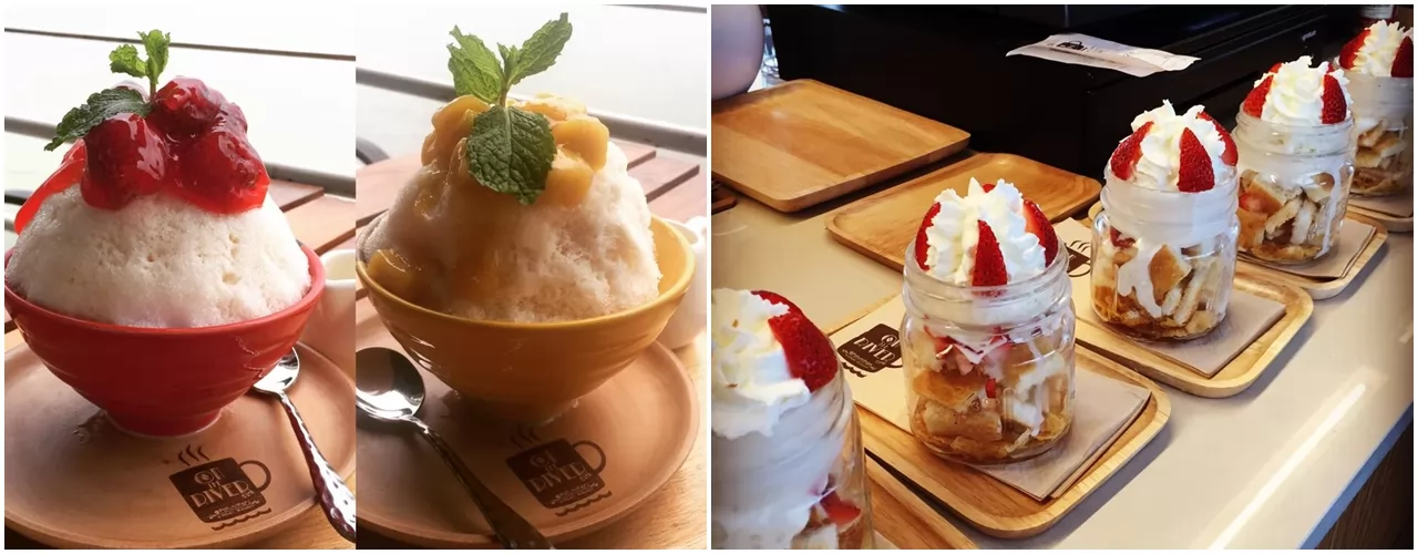 這裡提供的餐點,有多種蛋糕、熱和冷飲可任由客人挑選!1塊蛋糕在100-125銖之間;1杯熱卡布奇諾(Cappuccino)85銖。
