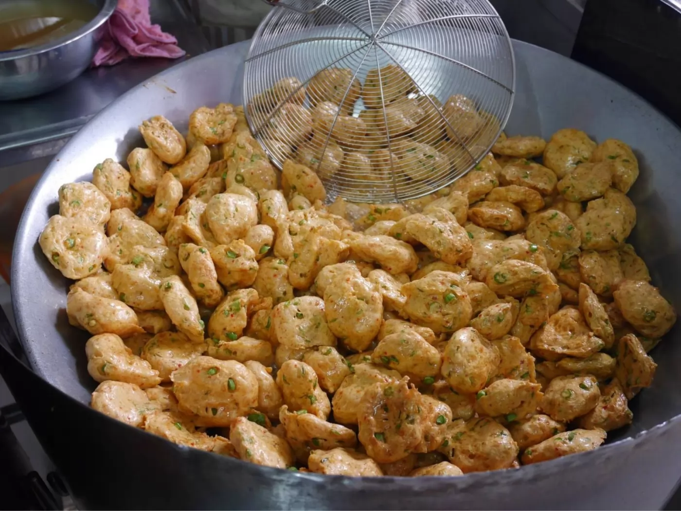 金黃的煎魚餅,鹹淡適中,為避免品嘗的時候覺得油膩,店家還會配上黃瓜和醬汁,比較迎合泰國人的口味。