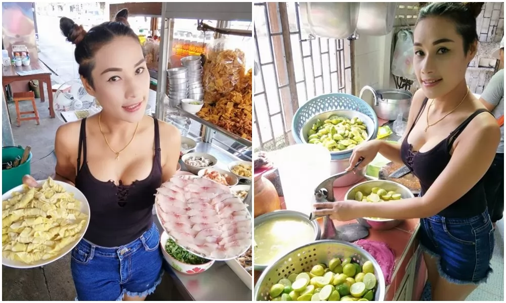 尖竹汶府(จันทบุรี)直轄縣,一家映豆腐粿條(ก๋วยเตี๋ยวเย็นตาโฟ) 店的老闆娘Ooy (อ๋อย),穿著大膽誘惑下,展現性感火辣的身材,迅速在網路走紅。