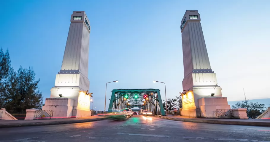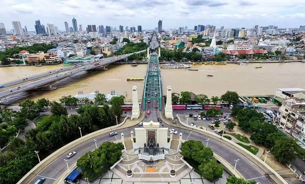 這座橫跨曼谷湄南河,1929年12月3日興建,前往曼谷西南部的吞武里府(Thonburi),到了1932年4月6日完工,總長度 678 公尺,由時任國王拉瑪七世揭幕,主要是為了紀念查克利(Chakri)王朝建立150周年暨曼谷開埠150周年,因此,英文簡譯為紀念橋。