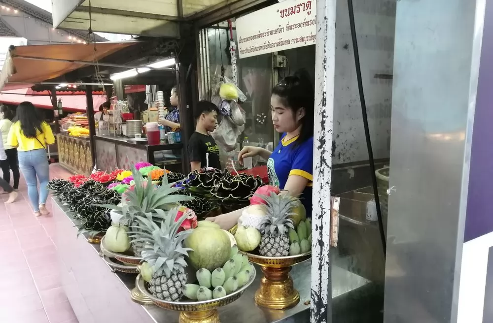 祭品還有還願時的水果(甘蔗、香蕉、菠蘿,費用不一),獻給象神的披肩、神鼠的天銖(200銖),如果點的是生日香加10銖。