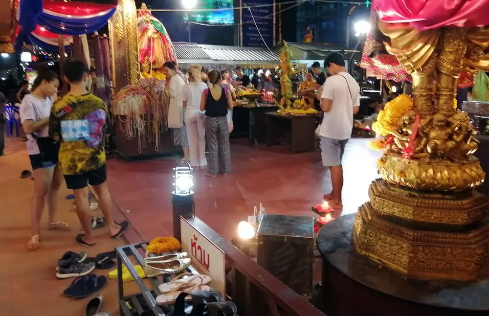 泰國不但供奉印度象神,還使用中國道教傳統的籤詩、籤筒和筊杯,中、英、泰三種不同的宗教文化,在這裡巧妙地融合在一起。