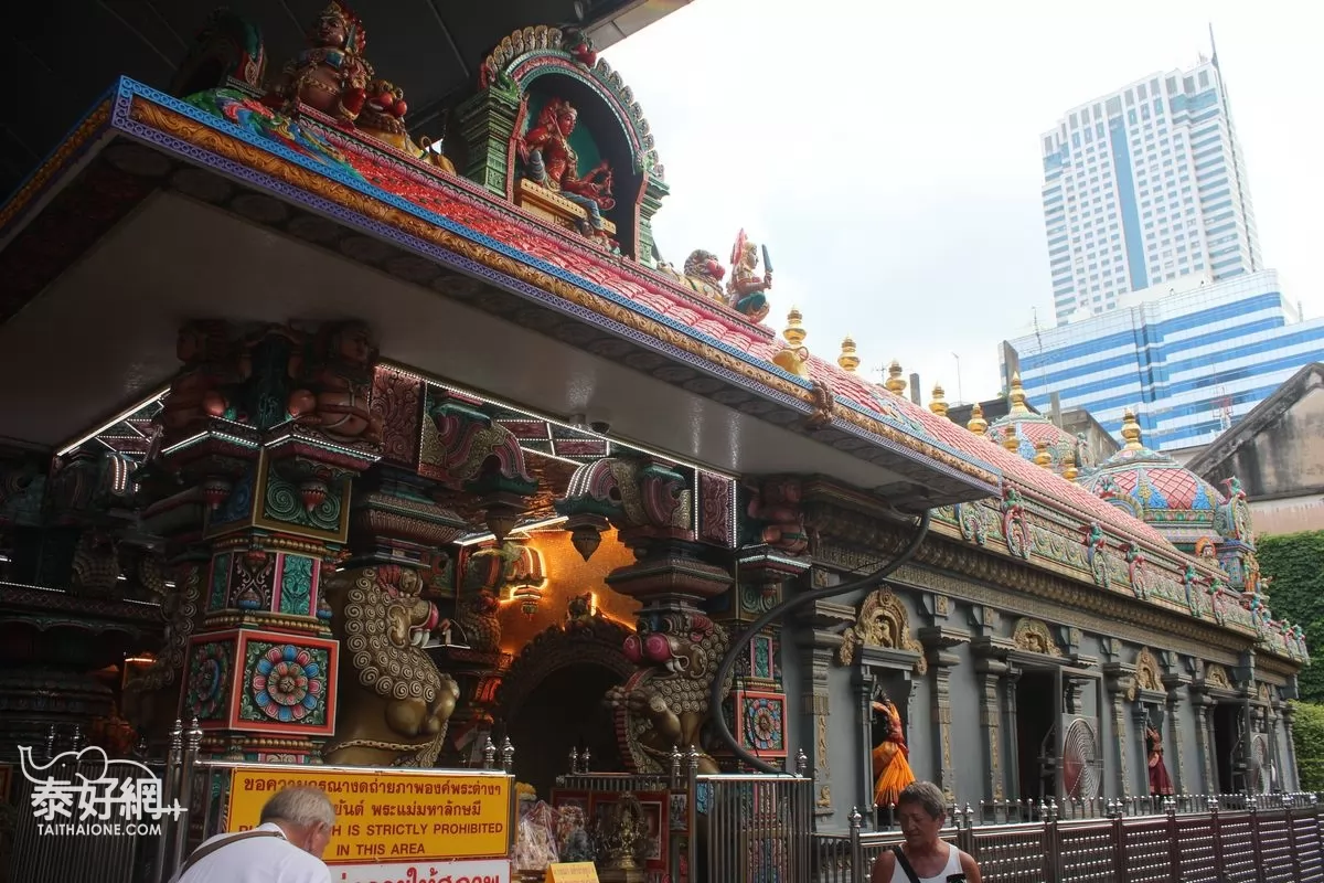 路過西隆(Silom)路時,很多人都會被這座華麗色彩的印度寺廟給吸引,忍不住停下腳步去觀賞,甚至想進去看看!