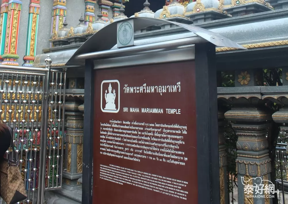 馬里安曼神廟(Sri Maha Mariamman Temple),是曼谷的第一個、也是最重要的印度神廟,泰文稱之為วัดแขก(Wat Khaek),由曼谷的泰米爾移民在1867 年創立,原本只是一座簡單的涼亭基台,爾後逐年收購土地增建至現今的規模。