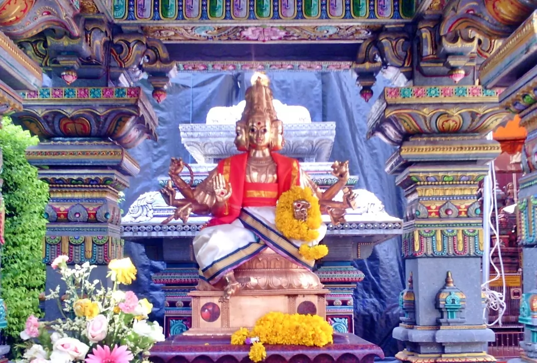 這是座寺廟供奉許多神,主神是Uma Devi,還有象鼻神和Kartick的雕像,建築風格是南印度典型的泰米納度的泰米爾寺廟類型,牧師都是來自印度。