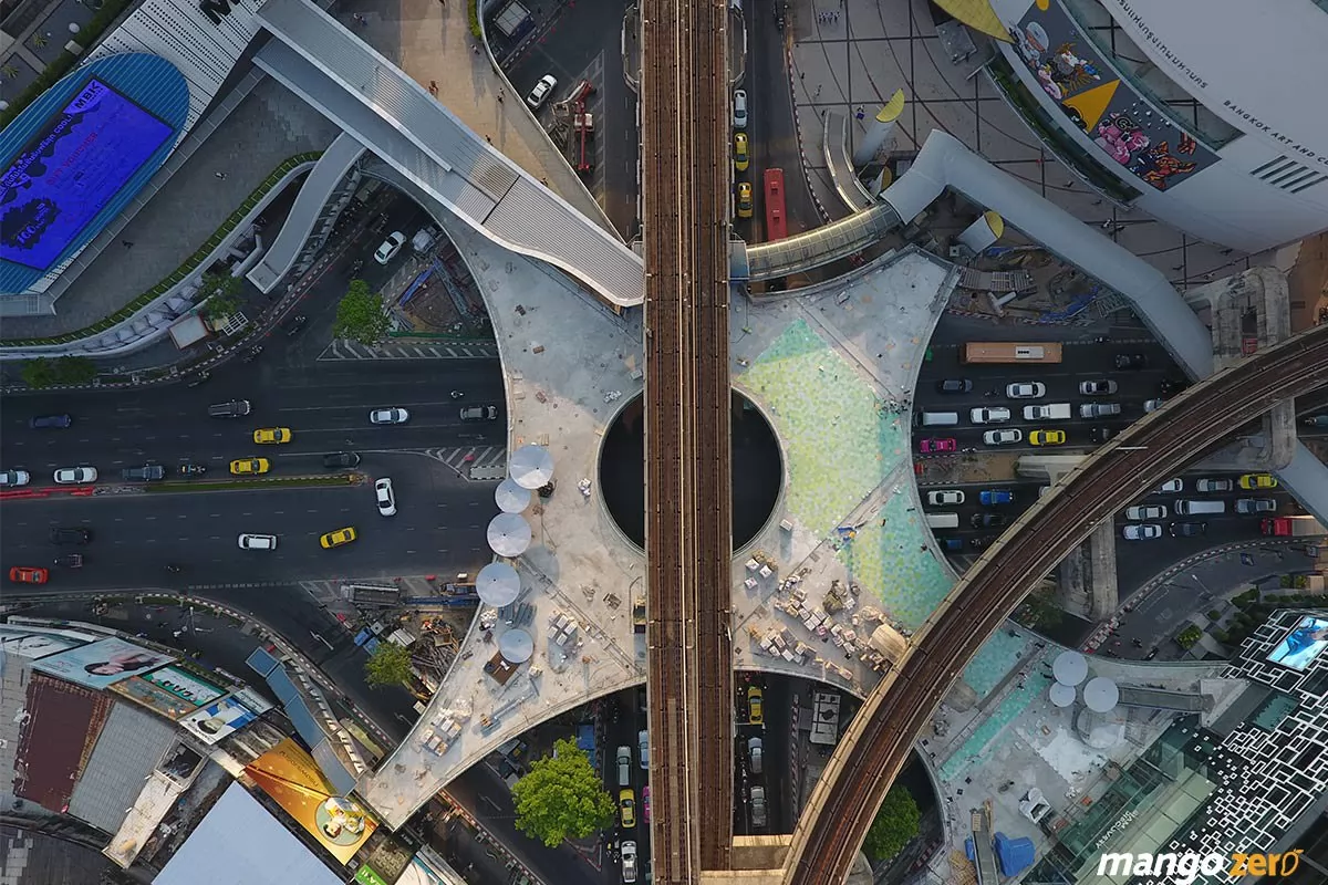 投資3億泰銖建的Siam Square天空廣場人行天橋,四面連通BTS國家體育館站,曼谷文化藝術中心,MBK,Siam Discovery,Siam Square等多個重要場所。