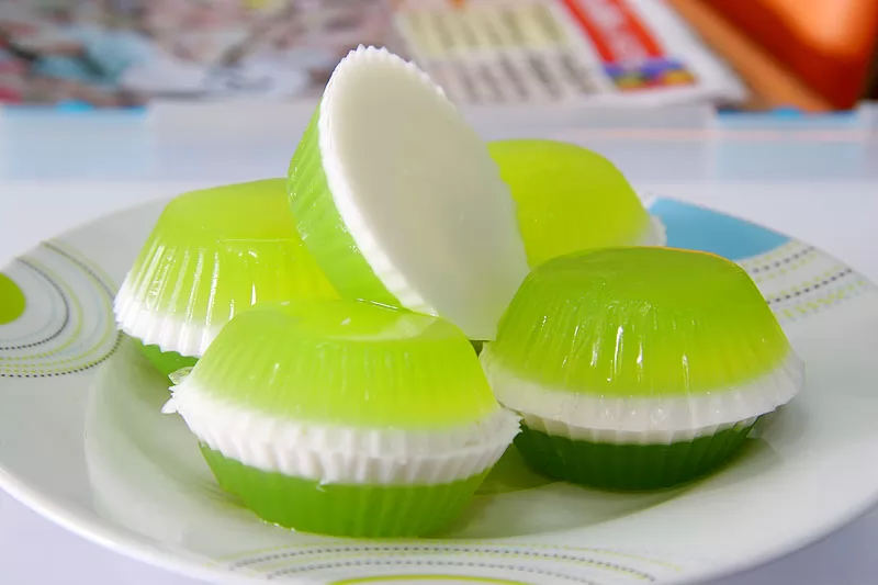 泰國人喜愛的甜食之一,因為購買方便,口感勁Q、味道甜美帶有葉子的香味,品種也豐富。這種糕點切成四方形的小件出售,有的底層加香草葉汁(ใบเตย)、有的底屠加西米露,是飯後常吃的甜點。