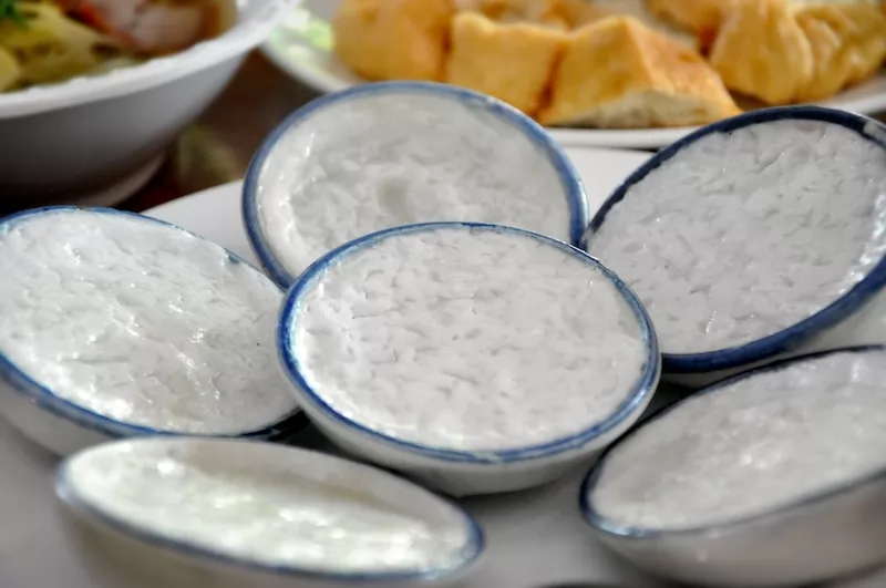 和布丁的做法一樣,椰奶布丁(也叫ถ้วยหน้ากะทิ)的傳統在於使用小磁碗,將椰奶汁倒在小磁碗上,放在蒸籠上煎熟,兩兩相對疊,避免髒到,客人要吃就用小湯匙挖起來吃,味道很像布丁,Q彈,有椰奶的香味,1碗大約5銖。