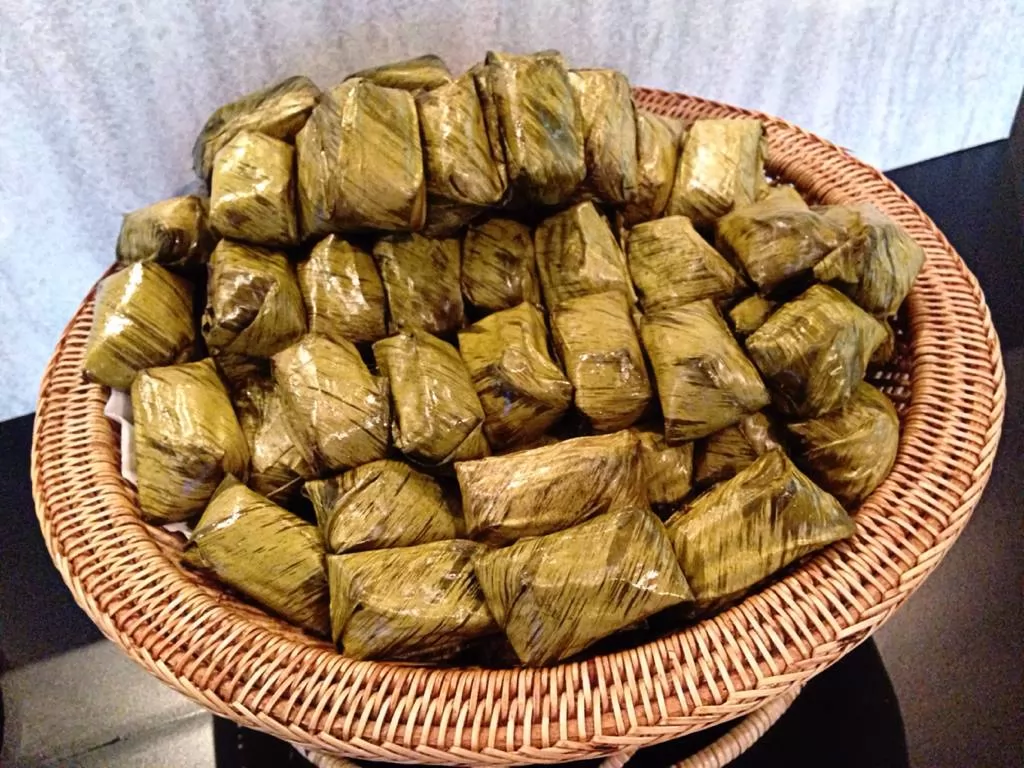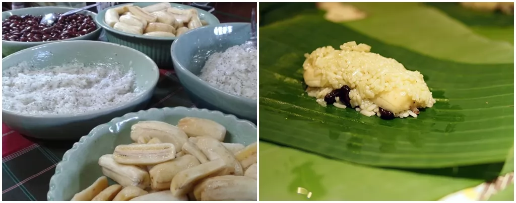 泰式傳統小吃的一種,用糯米、紅豆、白糖等,加上新鮮的芭蕉切片,然後用芭蕉葉包起來的(長方形),放到蒸籠,蒸熟就可以食用了。