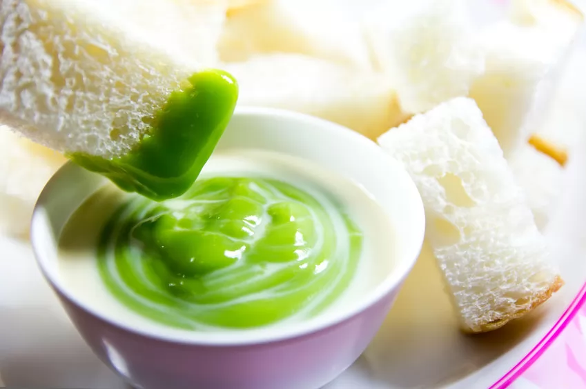 值得推薦的吃法,是用切片吐司蘸著吃的,吐司本來就會有點乾,搭配著這個醬正好,甜而不膩。另外,也有把椰奶香蘭醬料放進麵包裡,口味差不多。