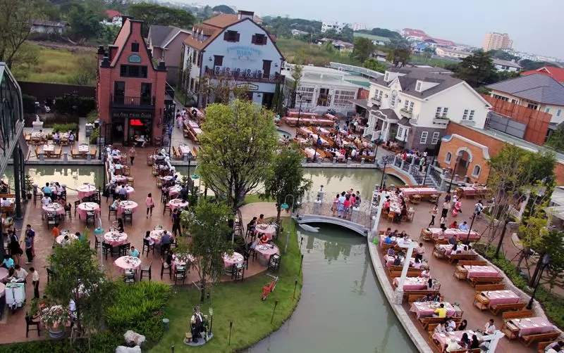 這裡的房屋、道路、設計都充滿了歐式風情,兩層樓的房屋被塗成不一樣的顏色,而且樓下和樓上都有店鋪供遊人購物休息。