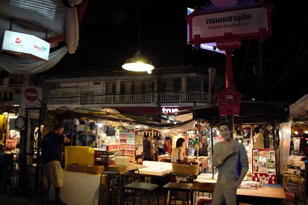 位於華欣市中心,火車站以北400米處,Th Dechanuchit路和Th Petchakasem路的交叉路口,有華欣(HUN HIN)標誌的路牌,這條長街就是夜市,下午五點就開始忙碌起來。一到晚上,各國遊客接踵而至。