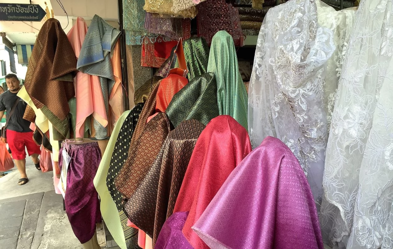 這裡雖名之為「市場」,其實是一條穿過印度社區的布店街,長長的街道上一家接一家販賣的都是各式各樣的布匹,從婚紗到做窗簾和家飾品,所需的各種布料都一應俱全。另外還有店家賣泰國傳統服裝。